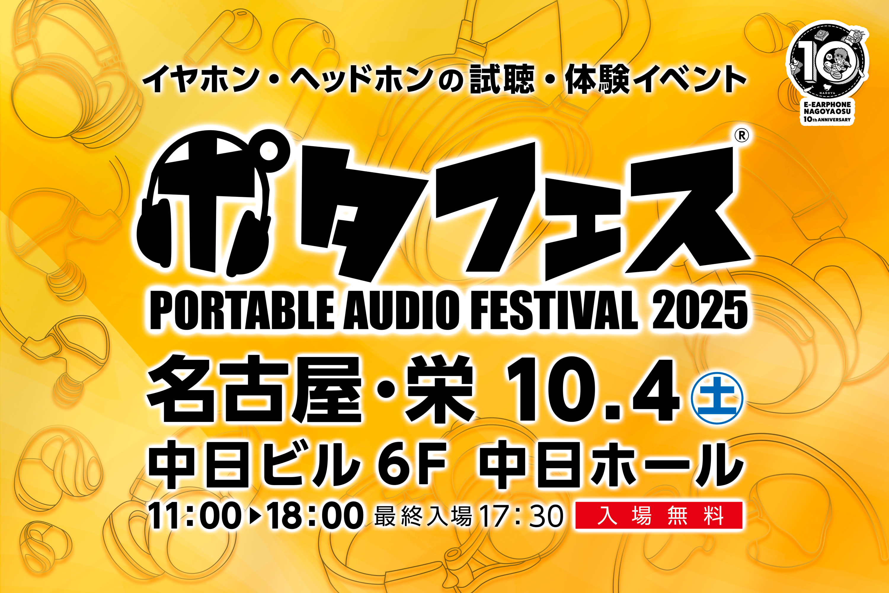 株式会社アユートは、2025年10月4日(土)に中日ビル(6F・中日ホール)にて開催される、世界中のヘッドホン・イヤホン・ポータブルプレーヤー・ヘッドホンアンプを一堂に集め多数試聴できるe☆イヤホン主催イベント『ポタフェス2025名古屋』に出展いたします。