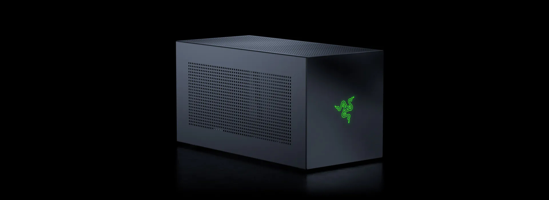 設置は直感的かつスピーディで、わずか数分でデスクトップ級のグラフィックス性能を利用可能にします。筐体には通気性に優れたスチール製シャーシと、システム負荷に応じて自動で回転数を調整する120mmファンを搭載。さらに高度な制御を求めるユーザーには、Razer Synapseソフトウェアを使用することで、冷却性能と静音性の最適化に向けたファンカーブのカスタマイズも可能です。
