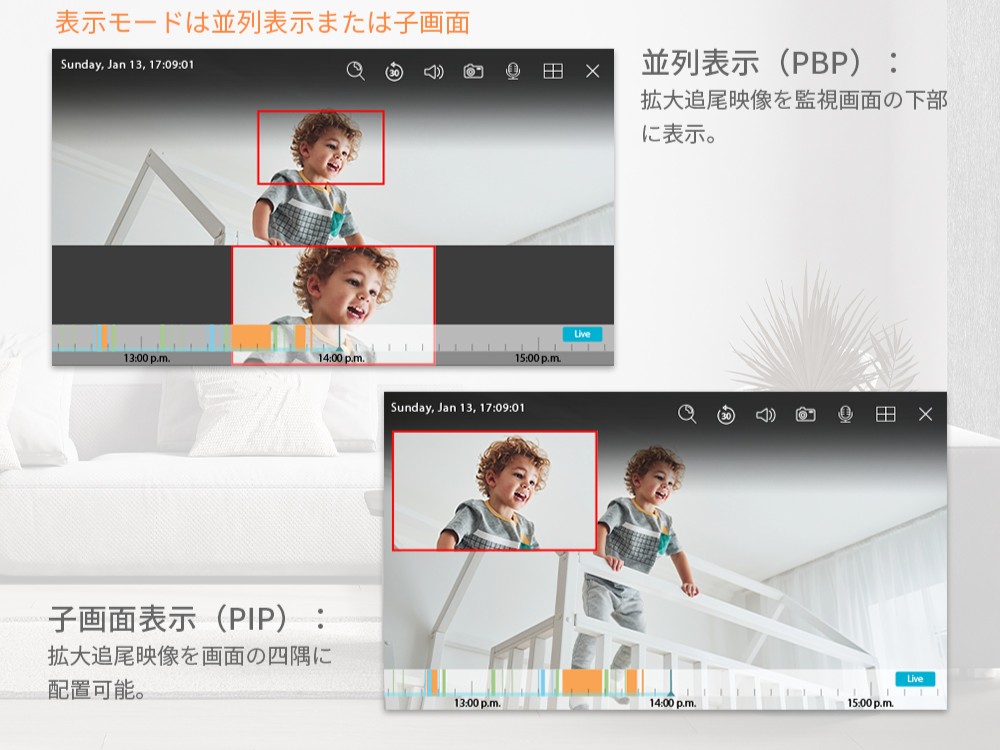 ・人体検知・転倒検知、デジタルズーム追跡機能