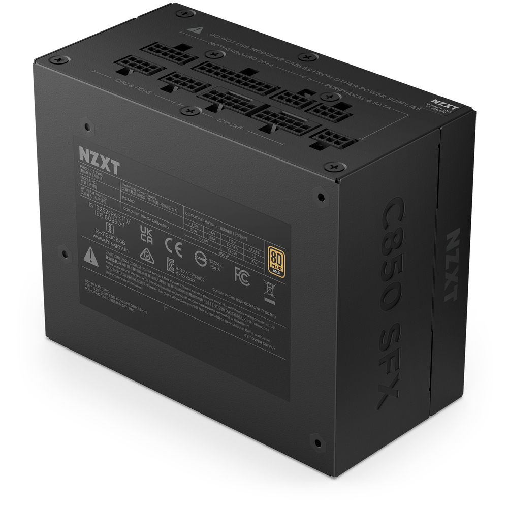 C850 SFX Goldは、スモールフォームファクターPC向けの850ワットフルモジュラーSFX電源です。ATX 3.1認証を取得し、600W 12V-2x6 PCIe 5.1コネクタを搭載し、NVIDIA® GeForce RTX™ 50シリーズなどの最新GPUに電力を供給します。