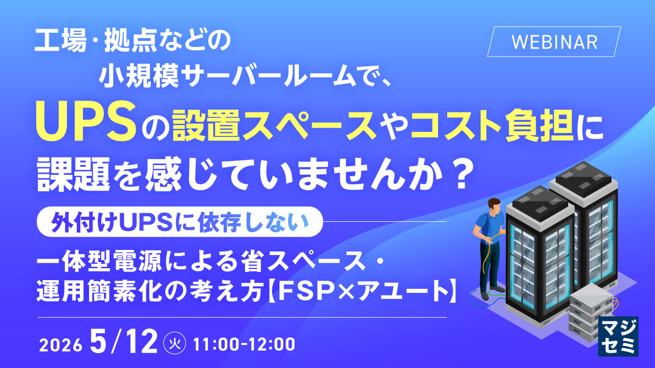 台湾・電源ユニットメーカー「FSP」の正規代理店を務める株式会社アユート(本社:東京都文京区)は、「工場・拠点などの小規模サーバールームで、UPSの設置スペースやコスト負担に課題を感じていませんか?~外付けUPSに依存しない、一体型電源による省スペース・運用簡素化の考え方【FSP × アユート】~」と題しまして、ウェビナーを2026年5月12日(火)午前11時より開催いたします。