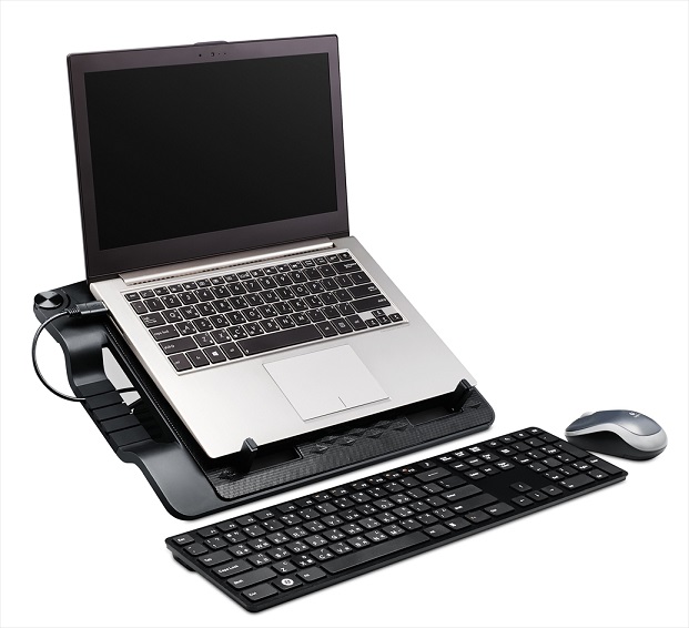 ノートパソコン以外にタブレットにも対応。冷やしながら充電・操作も可能。安定性の高い可動式の滑り止めホルダーを備えています。