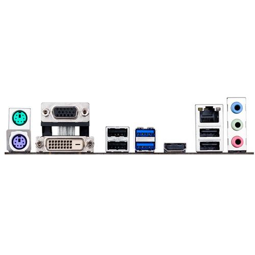 | 背面インターフェース | 1 x PS/2 keyboard (purple) 1 x PS/2 mouse (green) 1 x DVI-D 1 x D-Sub 1 x HDMI 1 x LAN (RJ45) port(s) 2 x USB 3.0 4 x USB 2.0 3 x Audio jack(s) |