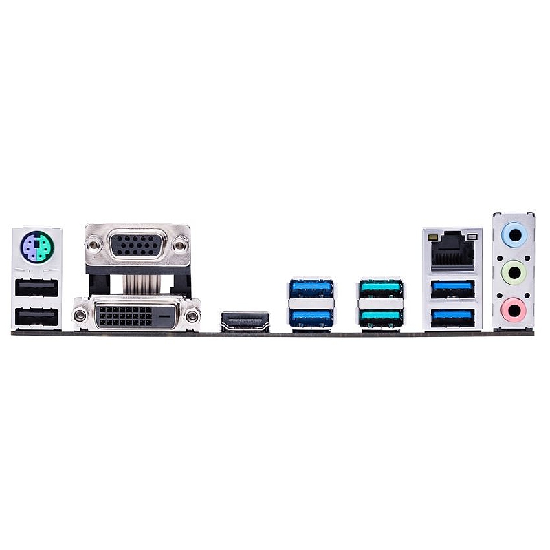 | Back Panel I/O Ports | 1 x PS/2 keyboard/mouse combo port 1 x HDMI port 1 x DVI-D port 1 x D-Sub port 1 x LAN (RJ-45) port 2 x USB 3.1 ports 4 x USB 3.0/2.0 ports 2 x USB 2.0/1.1 ports 3 x Audio jacks support 8-channel audio output 1 x USB 3.0 connector supports additional 2 USB 3.0 ports |