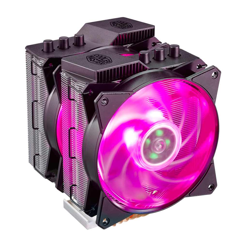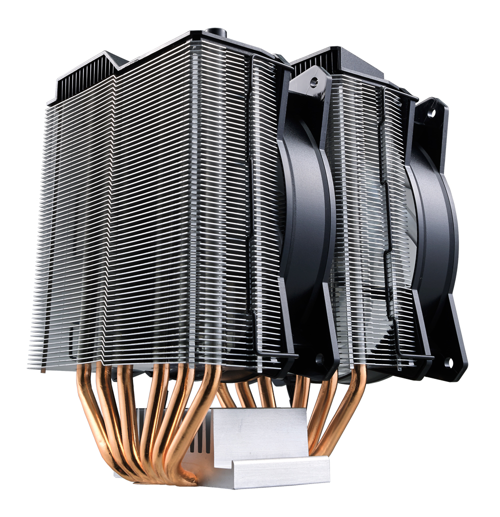 2つのタワー型ヒートシンクに、2基の「MasterFan MF120R RGB」を搭載。ユニークなデザインによって、ヒートシンクの表面積を拡大し、内側と外側に冷却ファンを配置することで、強力な冷却性能を実現しました。