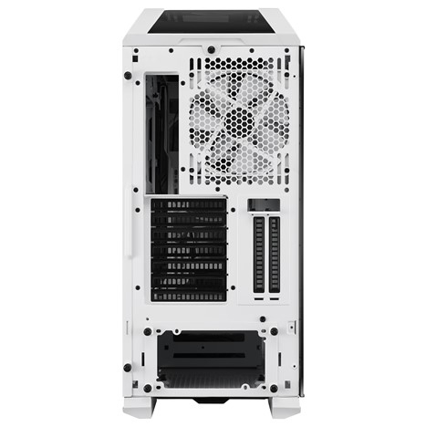 サイドパネルにはスモーク仕様の強化ガラス、トップパネルには透明プラスチックを採用し、ライトアップに最適な仕様にデザインされています。またリアパネルに縦向きのPCIスロットを備え、グラフィックスカードの垂直マウントにも対応しています。