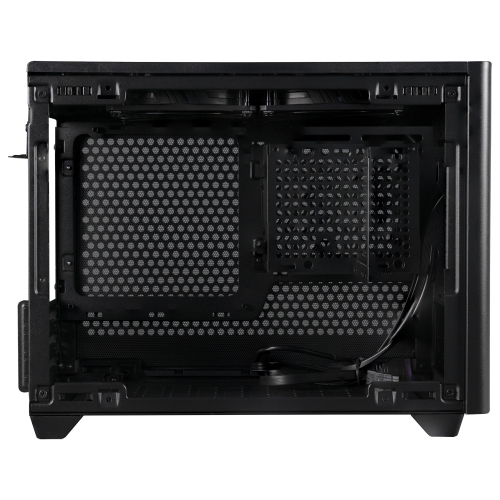 強化ガラスパネルやトップファンを含み、すべての外部パネルは、ピンで簡単に取り外せるように固定されており、工具を使わずに内部に簡単にアクセスできるようになっています。