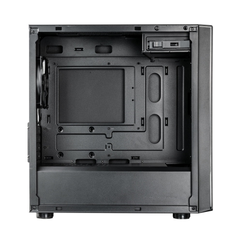 パーツ類を引き立てるオールブラックの内部に、ケーブルを隠すことができるPSUシュラウドを備えています。