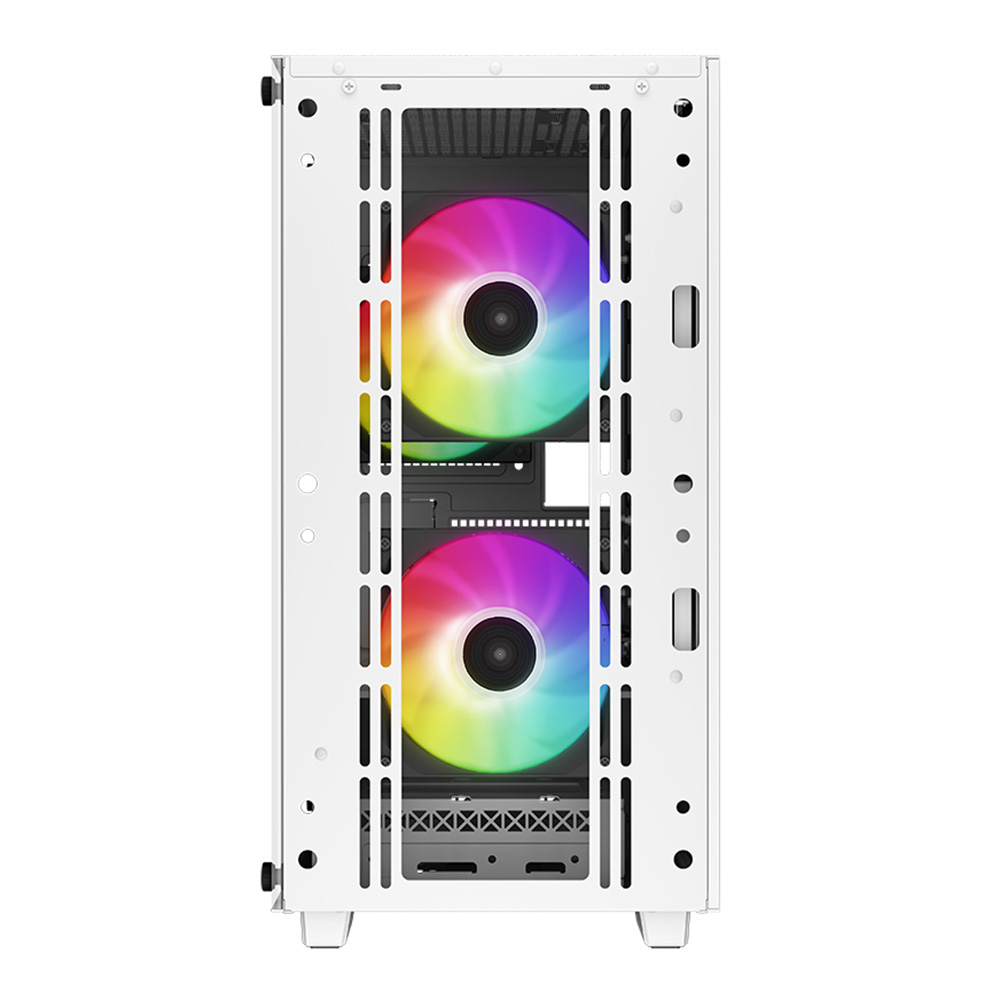 ファンのLEDを左右に分断するデザインながら両側のメッシュが高い通気性を確保するフロントパネルと、メッシュトップパネルを搭載し、ケース内に新鮮な空気を循環させ、熱のこもりを防止します。