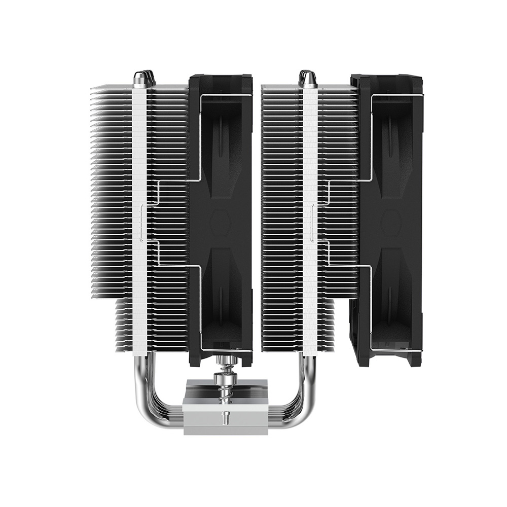 デュアルタワーヒートシンクは、全面にニッケルメッキ加工が施され台座と一体化した6本のヒートパイプと、2倍の表面積のヒートシンクにより、優れた冷却性能を実現しています。
