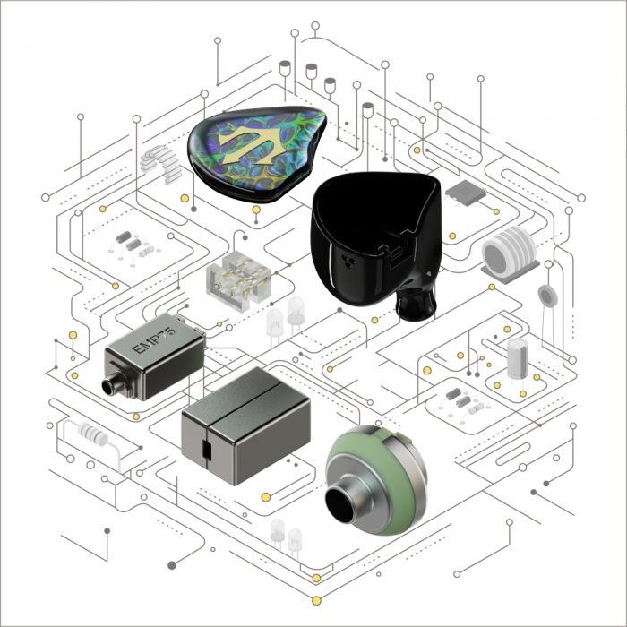 Empire Ears独自開発のバスレフ型構造9mm径サブウーファー(ダイナミックドライバー)「W9+(ウェポンナインプラス)」を搭載し、轟くようなパワー感と比類なき低音再生を実現しています。EMP75 BAドライバー