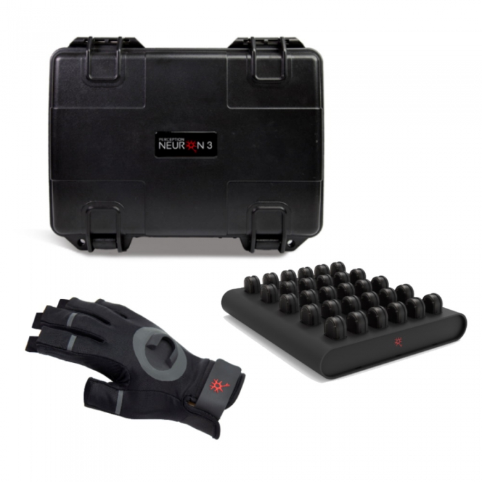 「Perception Neuron 3 Pro」には、Perception Neuron 3用グローブを3サイズ(S/M/L)同梱しています。グローブの親指・人差し指・中指・薬指・小指の左右計10カ所に、Perception Neuron 3用のNeuronセンサーを装着することで、Perception Neuron 3にて指の細かいモーションを取得可能にします。