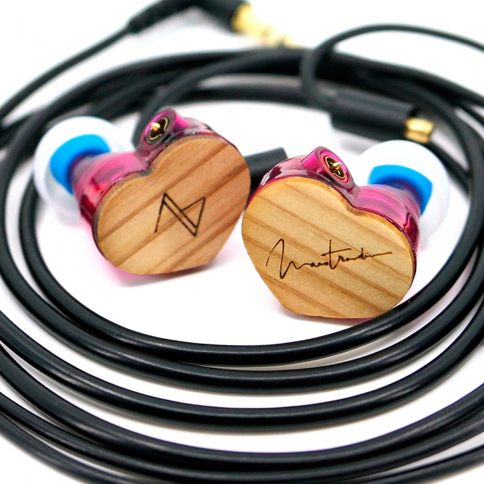 Maestraudioの代表であり開発責任者でもある渡部氏は、自らアコースティックギターのフィンガーピック演奏を趣味にしています。「弦をつま弾く瞬間の摩擦音、弦が鳴り響くサスティンが好き」というのが彼の音の嗜好です。渡部氏は、2023年にヴァイオリニストの石川綾子さんと対談した際、彼女の類い希なる演奏力は元より、その熱意や人間性を通してヴァイオリンの楽曲に興味を持ち、石川さんの楽曲含め、広くヴァイオリンの楽曲を愛聴するようになりました。ギターもヴァイオリンもボディは木材。その良さを活かして弦楽器のサスティンや音の広がりをイヤホンで再現出来ないか?渡部氏が出したその答えが独自のSAHPテクノロジーを採用した『MA910SR DC』です。弦楽器の持つ高域のサスティン、そして音の広がり、さらに弦が動き始める時の摩擦音など、リアリティのある弦楽器の音を出すため、SAHPを最適化しチューニングを施しました。MA910SR DCは、そういったコンセプトの元に生まれたイヤホンです。