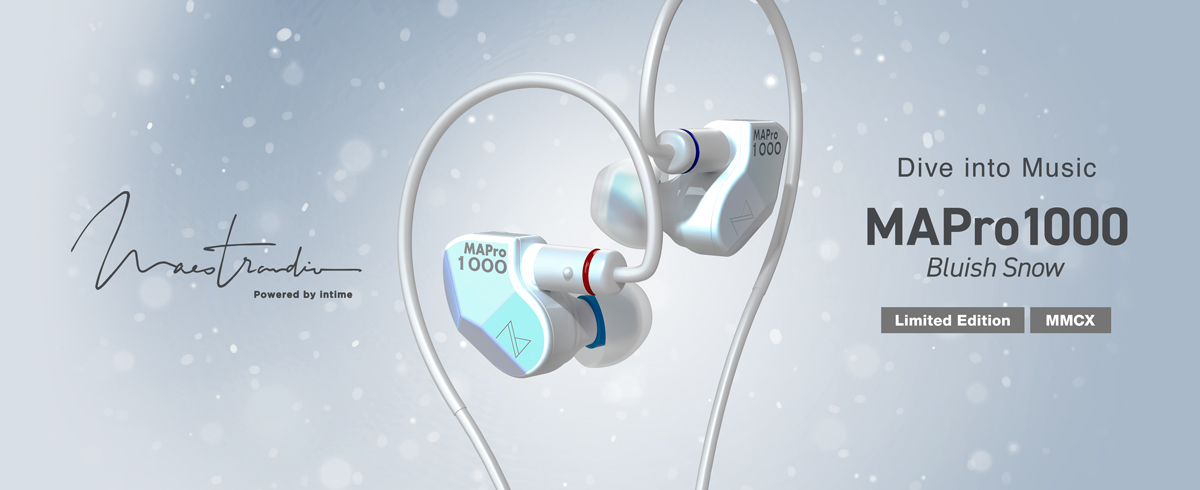 Dive into Musicをスローガンに開発した「MAPro1000」は、快適なフィッティングと広いサウンドステージで、音楽やゲーム、映画、VR空間などあらゆるコンテンツで没入感を高めるイマーシブサウンドモニターIEMです。筐体形状で耳に対し固定することで、耳道の負担を軽減しつつ、より快適なフィッティングと遮音性向上を同時に実現する小型モニターイヤホン形状。動いてもズレにくい上、長時間の使用でも耳道への負担が少なく疲れにくいのが特徴です。『MAPro1000 Bluish Snow』は、MAPro1000にマイナーチェンジを施した限定生産のリミテッドカラーです。シェルカラーにはブランド初の不透過ソリッドカラーとなるホワイトを採用。フェイスプレートには鯖江(福井県)の匠による蒸着技術を初採用しています。そして新たな試みとして接点に用いる半田をオーディオ用途に適していると言われている低損失の半田材料に変更。ケーブルコネクターカバーも左右判別がしやすいタイプを採用しました。MAPro1000 Bluish Snowは、新たな試みを施した特別なリミテッドIEMです。