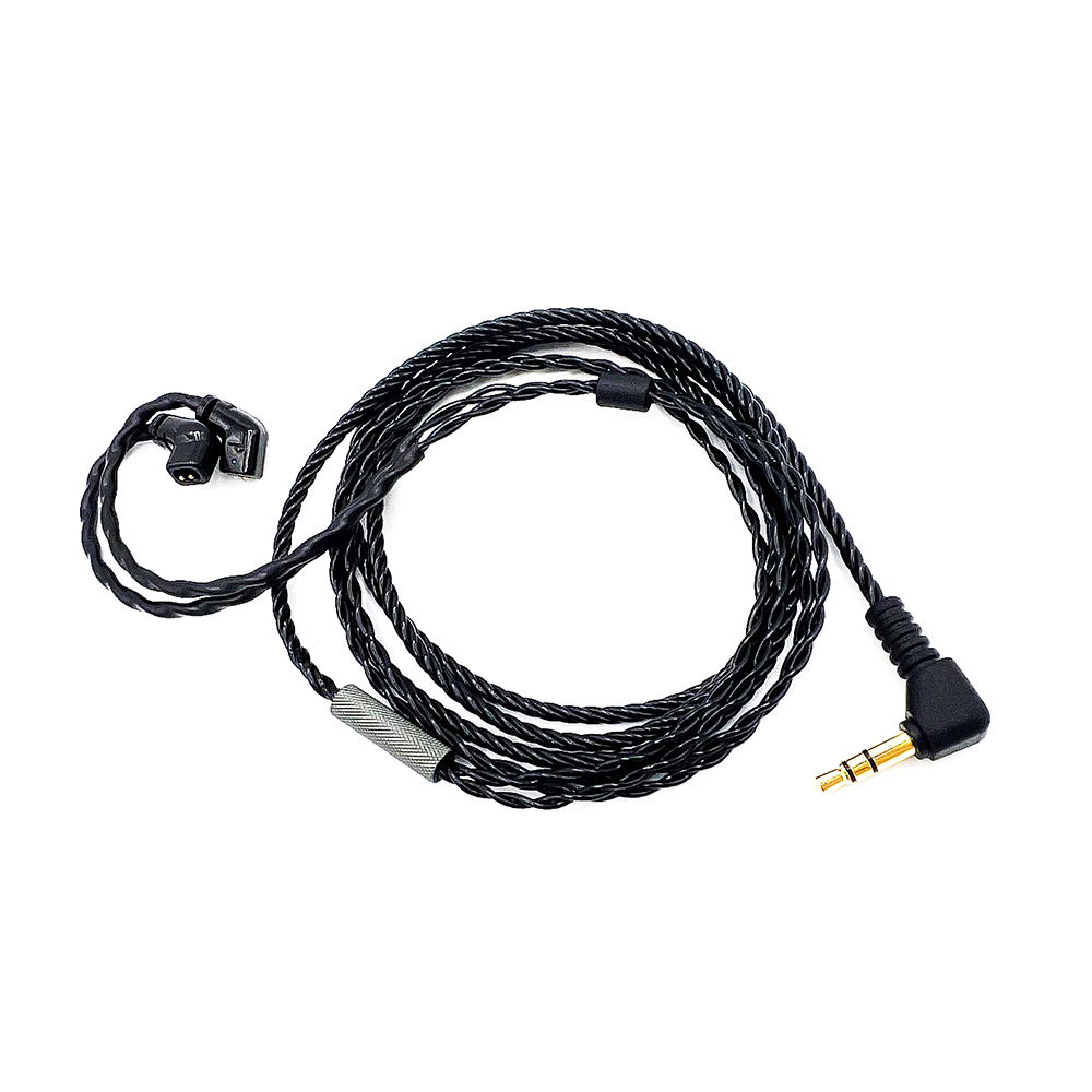 ケーブルにはニュートラルなサウンドの4芯銀メッキ銅を採用。120cmでケーブル被膜にブラックカラーのTPEを使用し、癖がつきにくく優れた取り回しを実現しています。プラグ部は、ワイヤレス受信機との接続のしやすさと抜けにくさを考慮した、L字のモールドタイプを採用。そして、ケーブルを衣服に固定するためのケーブルクリップ、6.35mm標準への変換プラグ、持ち運びやすいコンパクトなセミハードタイプキャリングケースが付属します。※コネクター部は、ケーブル互換性が高いカスタムIEM Flat 2pin(0.78mm)と、2pinコネクターをモールドで覆い耐久性が高く汗にも強いプロユースのqdc 2pinの2タイプから選択可能です。