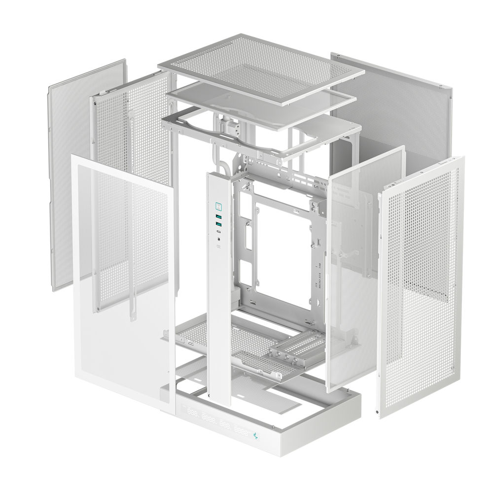 メッシュパネル部の着脱可能なダストフィルター、ツール不要で着脱可能なトップパネル、29.6mmの広い裏配線スペースを備え、組み立てやメンテナンスが容易です。