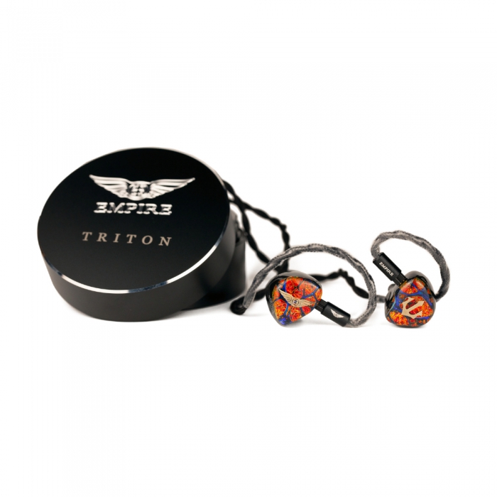 『TRITON KASHMIR』は、Empire Earsブランド10周年の節目を飾り、そして同じく10周年となるOlympusシリーズの新ユニバーサルIEMとして開発した「TRITON」をベースに、フェイスプレートデザインを従来のドラゴンハイドからカシミールに変更したカラーバリエーションモデルです。落ち着いた深海の神をイメージしたTRITONとは対となるTRITON KASHMIRは、マグマと水が海底の火山噴出孔で出会う混沌を表現しています。TRITONシリーズは、デュアルコンダクション&トライブリッド構成の採用によるハイパフォーマンスなサウンドと、エルゴノミクスシェルによる優れたフィッティングを両立しています。「W9+」(WEAPON 9+)ダイナミックドライバー、精密に設計された特注の「EMP75」BAドライバー、そしてSonion製の次世代デュアル高質量骨伝導ドライバーの片側計4ドライバーを搭載。空気伝導と骨伝導の両方を通してオーディオを再生する独自のデュアル・コンダクション・アーキテクチャー、異なるドライバーの性能を引き出すsynXクロスオーバーネットワーク、共振を抑える独自のARC(アンチ・レゾナンス・コントロール)シャーシが、各ドライバーの性能を最大限引き出しつつ、調和させています。ケーブルには4.4mmバランスプラグを搭載した4芯OCCリッツ線を採用。