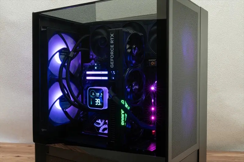 また、垂直マウント構造は大型のグラフィックカードに無理な負担がかからないためマザーボードスロットへの負荷を軽減することができます