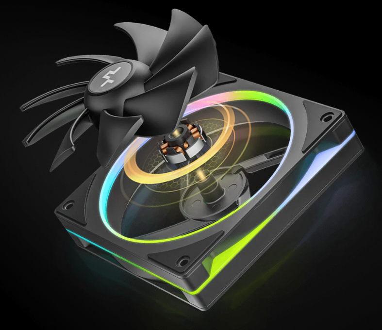 二重リング構造のレイヤードライティングを採用。ファンブレードの周囲を取り囲むようにフレーム内側に配置されたライトストリップと、フレーム外枠のくり抜かれた箇所に計20個のARGB LEDを配置し、PCを鮮やかにライトアップします。ライティングはマザーボードとの同期に対応します。