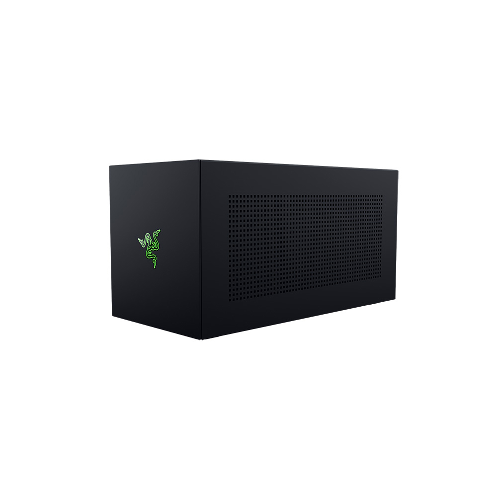 設置は直感的かつスピーディで、わずか数分でデスクトップ級のグラフィックス性能を利用可能にします。筐体には通気性に優れたスチール製シャーシと、システム負荷に応じて自動で回転数を調整する120mmファンを搭載。さらに高度な制御を求めるユーザーには、Razer Synapseソフトウェアを使用することで、冷却性能と静音性の最適化に向けたファンカーブのカスタマイズも可能です。