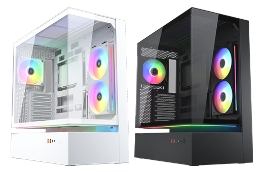 COUGARの一体成型ファン「UNITY 240 ARGB REVERSE BLADE」を標準搭載。マザーボード横に設置しており、静音性の高い美しいRGBファンがケース内部を彩ります。