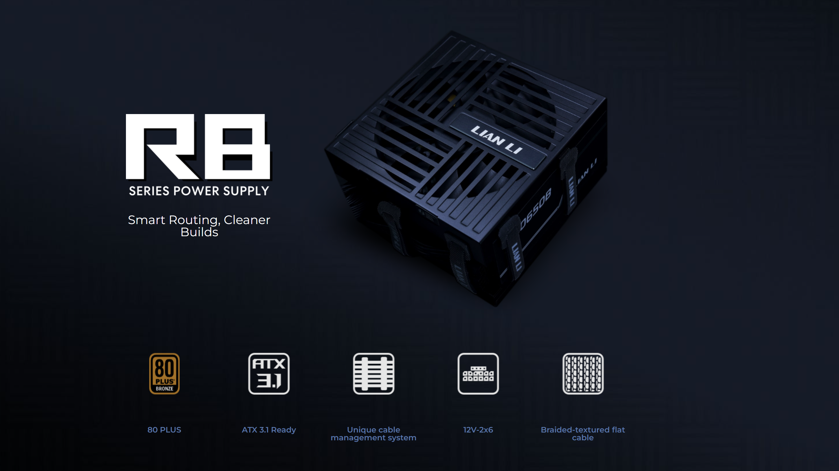 最大85%の効率を実現する80 PLUS Bronze認証取得のLIAN LI電源ユニット・RBシリーズは、550W/650W/750Wの3モデルをラインナップしています。Intel ATX 3.1規格に準拠しており、650W/750Wモデルには次世代GPUとの互換性を確保するためにネイティブPCIe Gen 5.1 12+4ピンコネクタを搭載しています。