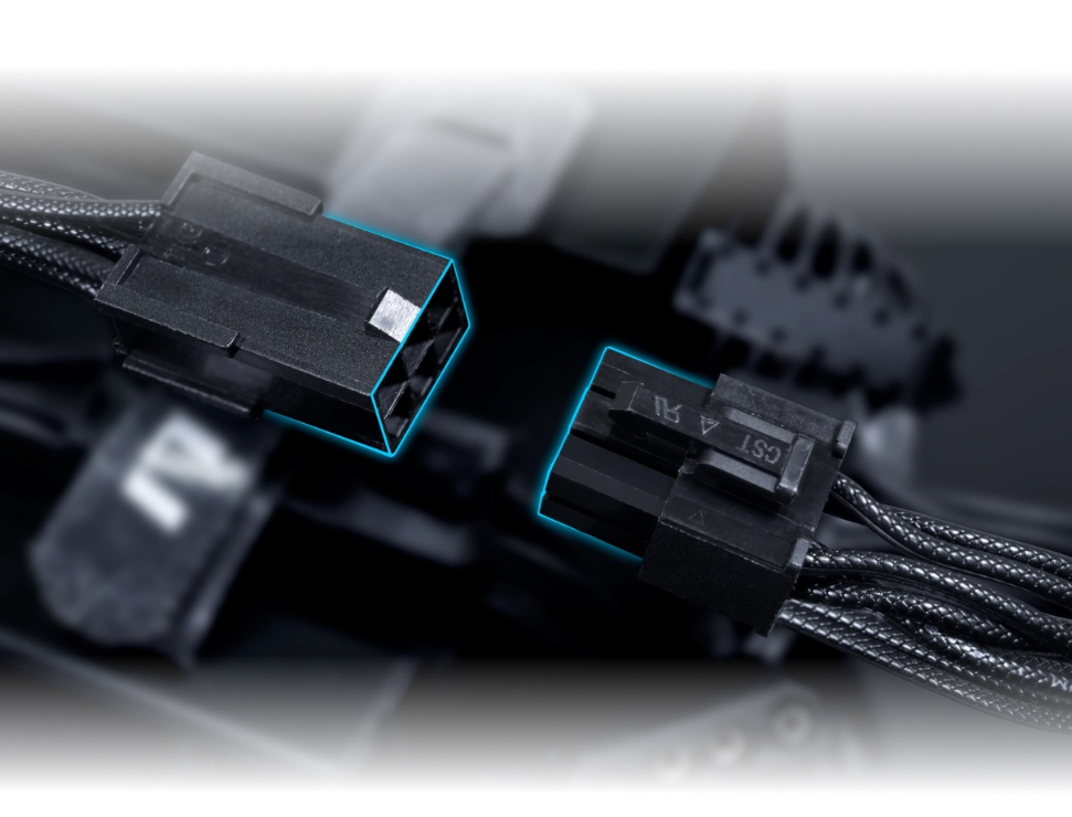 650W/750Wモデルでは、最新の ATX 3.1 仕様に準拠した次世代 12V-2×6 電源コネクタを備えており、PCIe 5.1 グラフィック カードを直接サポートし、現代のシステムの増大する電力需要に対応します。※12V-2×6コネクタは、両側に2色のハウジングデザインを採用しています。確実に接続するために、青い部分が完全に差し込まれていることを確認してください。
