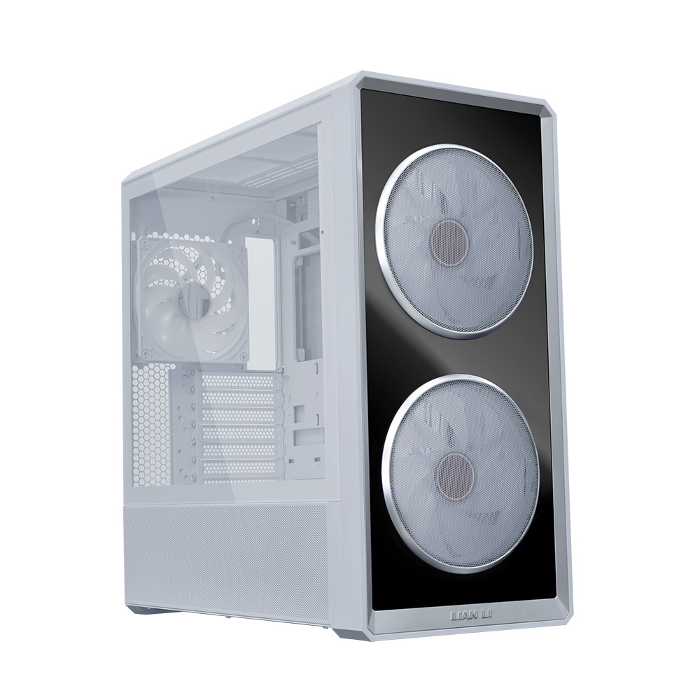 フロントにはFDBベアリングを採用する170mmファンを2基標準搭載しており、「LANCOOL 217」同様、エアフローに注力しています。フロントパネルやフロントファンのARGBライティングは、I/Oボタンなどで簡単にコントロールできます。