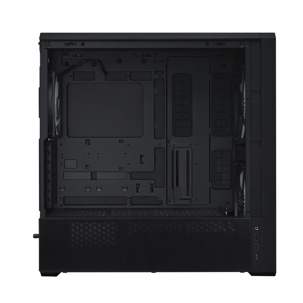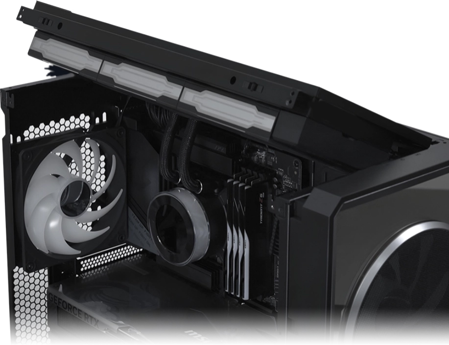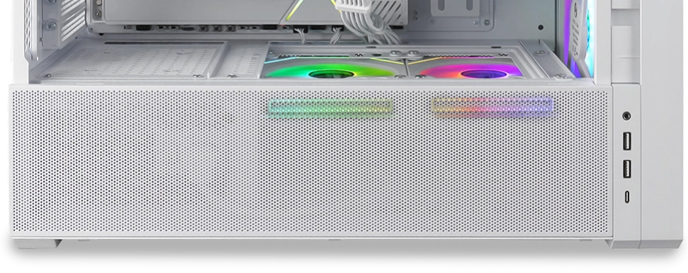 フロントには、奥行きのある空間を生み出すインフィニティミラーデザインを採用。内部を幾重にも縁取るARGBライティングと、標準搭載の170mm ARGBファンがフロントを鮮やかに彩ります。
