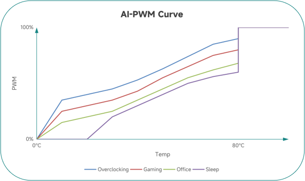 AIスマートモードでは、DeepCreativeソフトウェアがファンカーブをもとに、負荷状況に応じてアルゴリズムで動作を自動調整します。