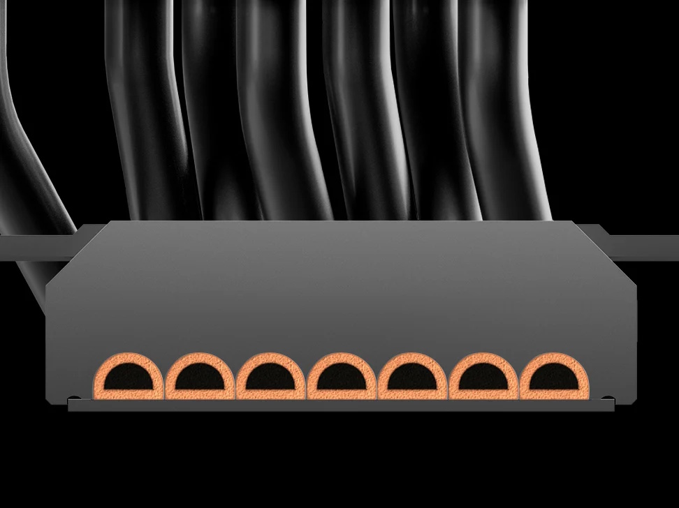 ・隣接するヒートパイプ間の接触面積を増やし、熱伝導を促進。冷却性能をさらに強化