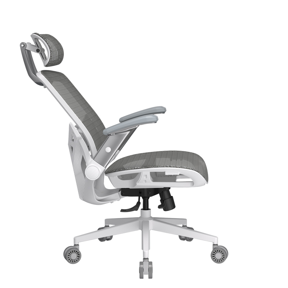 エルゴノミクスの観点から設計されており、自然なカーブを描く背もたれや座面、ランバーサポートやアームレスト、ヘッドレストは細かな調整が可能。背もたれや座面は快適なメッシュ素材を採用しています。