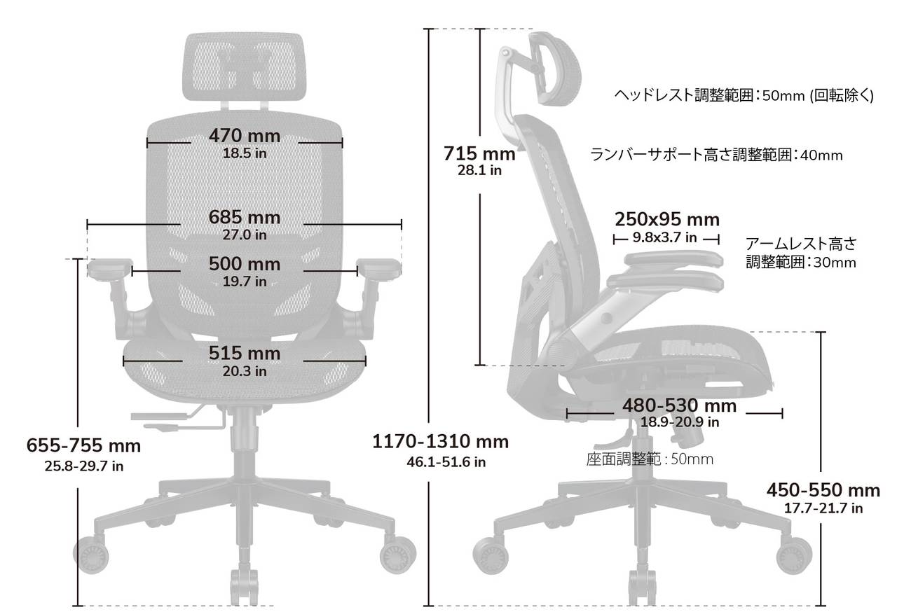 人間工学を基に設計されており、腰部のランバーサポートの高さ、座面の奥行きの調整ができます。ランバーサポートの調整