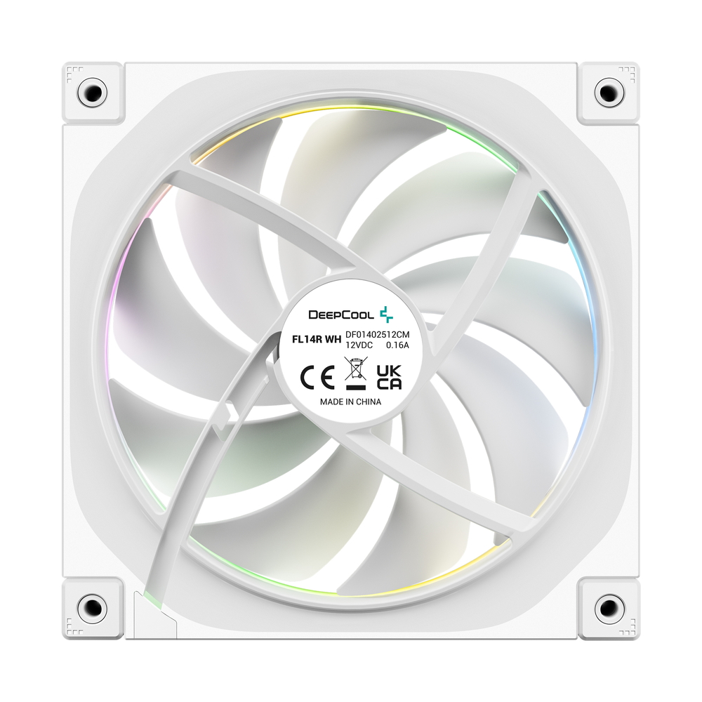 DeepCoolの独自のライトエフェクトを備えたケースファン「FL」シリーズに、140mmケースファン・リバースブレードファンモデル「FL14R WH」が登場します。
