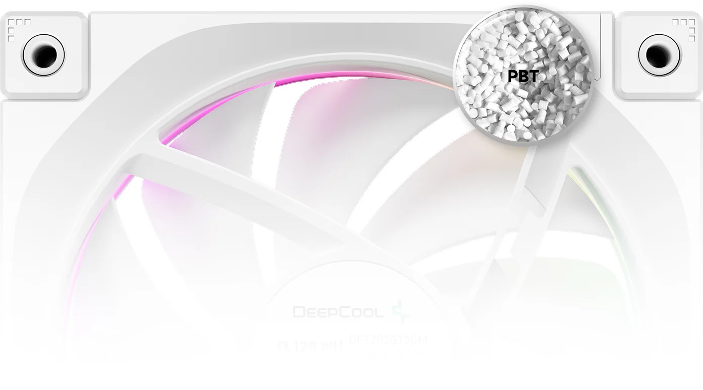 ファンブレードとフレームには、強化されたPBT複合素材を採用しています。ファン全体の構造強度と動的バランスをさらに向上し、長寿命と信頼性を両立しています。