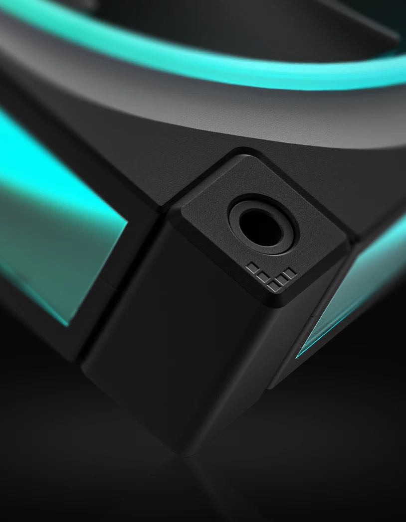 PWM制御とARGB同期を統合した8ピンコネクターを採用し、取り付けが簡単で安全性も向上しています。さらに、四隅に設置された全面ゴムパッドが、ファンの振動を最小限に抑え、不均一な取り付け圧による騒音を軽減します。
