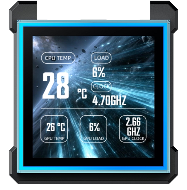 あらかじめ設定されたテーマで動作し、冷却水の温度とポンプの速度を監視します。ケーブルやシステムリソースは必要ありません。