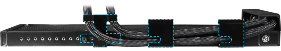 最大3200RPMのパフォーマンスを発揮するポンプを内蔵しており、冷却性能を強化。ラジエーターは24mm厚の薄型360mmラジエーター(400×122×24mm)を搭載しており、さまざまなケースとの互換性が高く、改良されたブラケットにより、取り付けも容易です。また、ラジエーター側面に専用クリップにてチューブを固定することで、すっきりとした外観を保ちます。