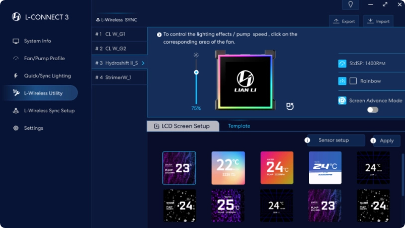 LIAN LIのソフト「L-Connect 3」を使用することで、システムの設定やモニタリング、ディスプレイの変更など、さまざなコントロールが可能です。