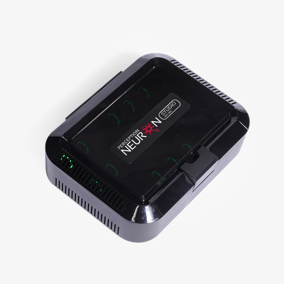 「Perception Neuron Studio Body」は全方向性アンテナとトランシーバーを各1台同梱しています。トランシーバーに搭載された全方向性(オムニ)アンテナは、3dBiの伝送ゲインアンテナとなります。通常の使用環境では約8〜10メートルの範囲で信号を受信することができます。