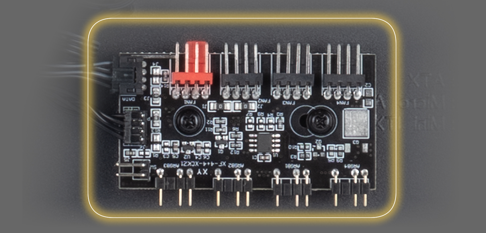 ケース内には最大4セットのPWM/ARGBを制御するファンハブを内蔵しています。