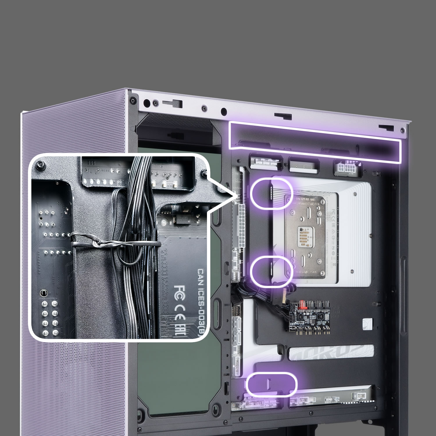 ASUS「Back-To-the-Future(BTF)」、MSI「PROJECT ZERO」などの背面コネクターマザーボードに対応し、ケース内部をすっきりと美しく「魅せる」ことができます。落ち着いた雰囲気を醸し出すブラウン系の「Mocha Bronze」と、薄紫色がすっきりとした印象を受ける「Lilac Silver」の2モデルをラインナップしています。