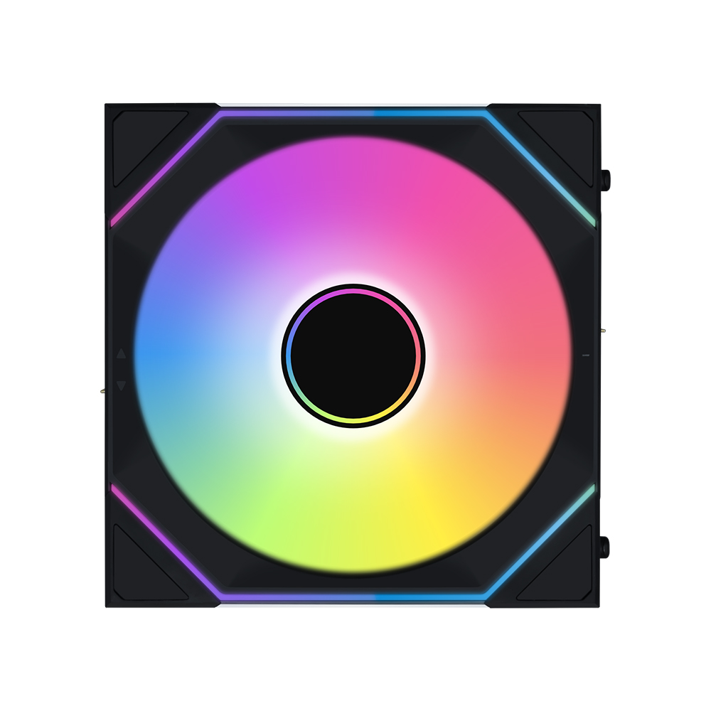 ファンの中央とフレーム側面にインフィニティミラーデザインを採用。フレーム側面では、両側面のインフィニティミラーデザインを異なるものにすることで、視覚効果のバリエーションを付けています。