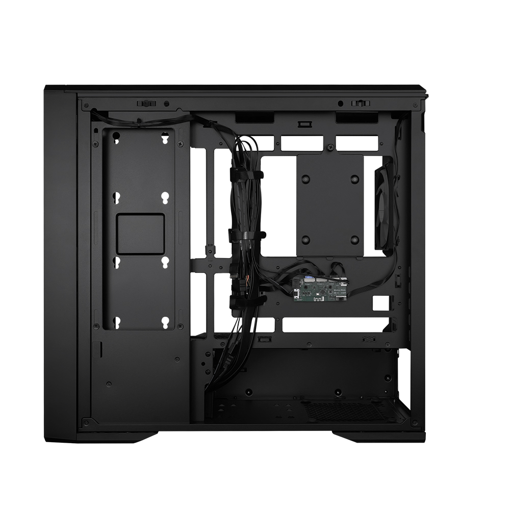 コンパクトなサイズながら、MicroATX、Mini-ITXに対応。MicroATXでは背面コネクターマザーボードもサポートしています。冷却性についてもフロントとトップに140mmファンを搭載できるほか、360mmラジエーターも搭載可能です。