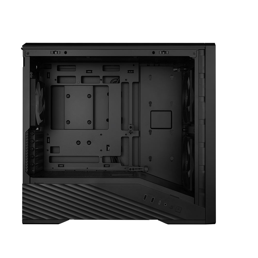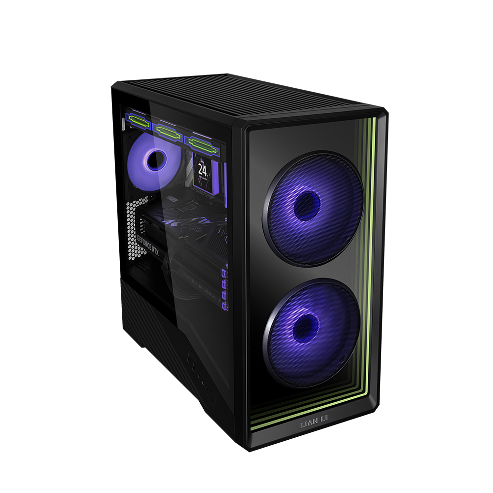 フロントには、奥行きのある空間を生み出すインフィニティミラーデザインを採用。内部を幾重にも縁取るARGBライティングと、標準搭載の140mm ARGBファン2基がフロントを鮮やかに彩ります。