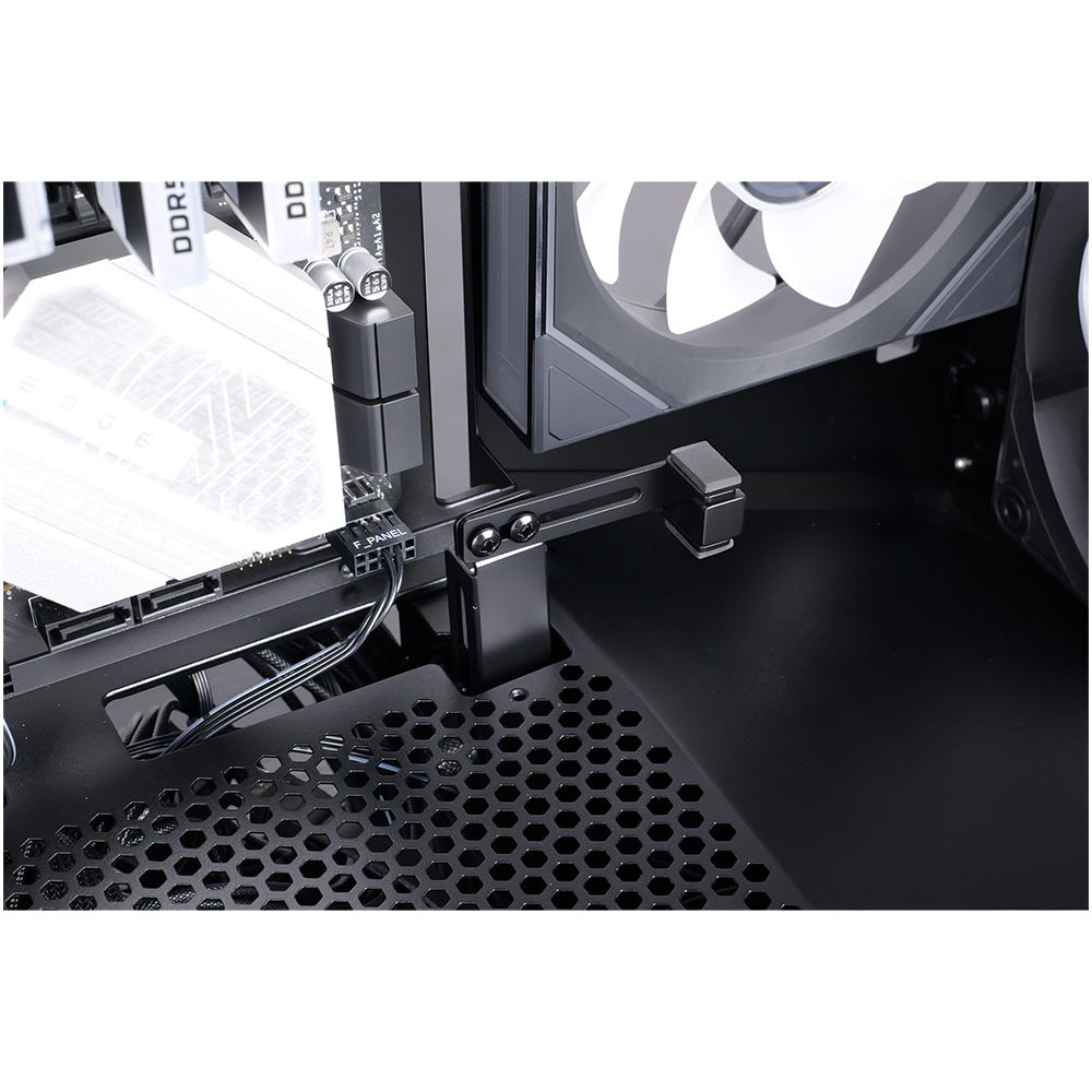 グラフィックカードは長さ400mmまでサポート。大型のグラフィックカードを支えるため、調整可能なたわみ防止ブラケットを備えています。ケーブル管理もしやすく、デザイン性と実用性を兼ね備えたPCケースです。