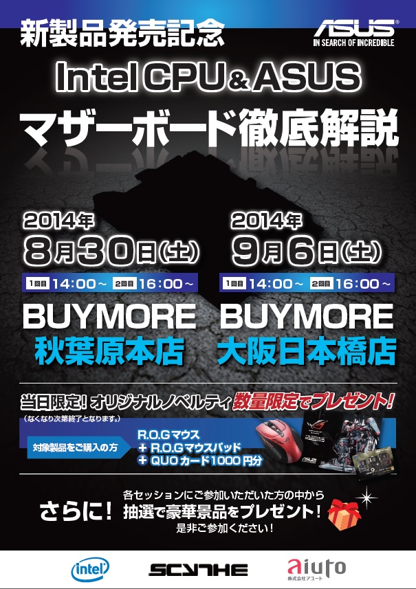 旧世代からパワーアップ検討の方、自作の最新技術が気になる方など自作ユーザーの方が楽しめる内容となっております。各セッションをご参加いただいた方の中から抽選で豪華景品もプレゼント!ぜひご参加ください。