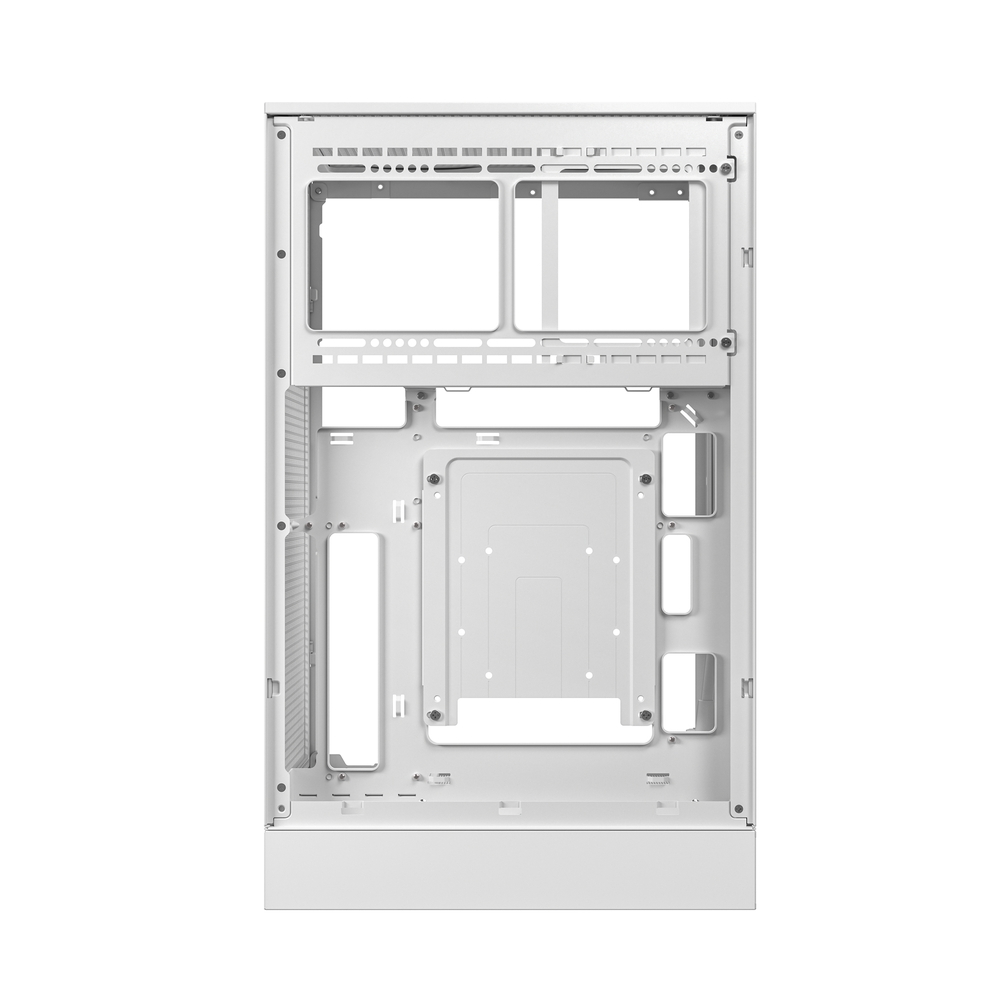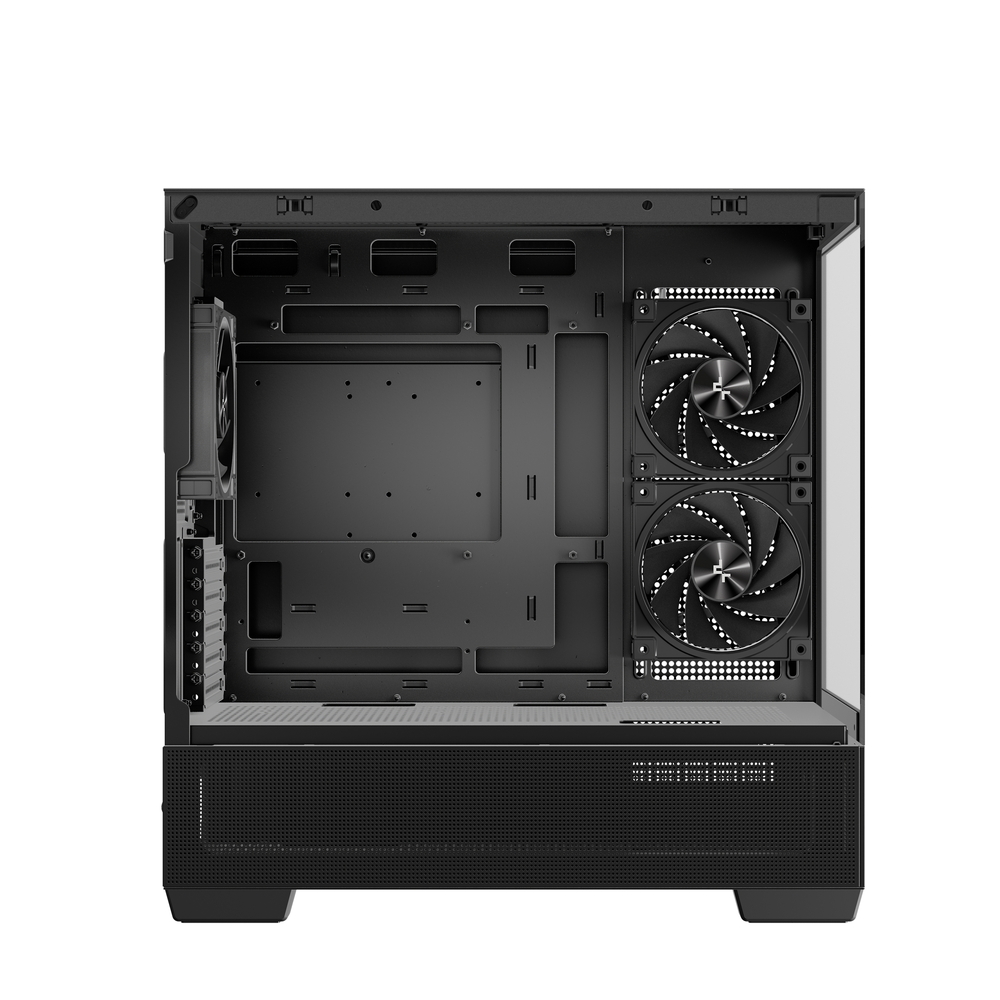 フロント、サイドに強化ガラスを搭載したパノラマデザインにより、ケース内部を美しく見せることが可能です。ケース下部のメッシュチャンバーは、デザイン性を損なうことなくGPUやPSUへのエアフローを強化します。