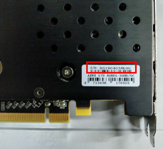 ケースファンやアクセサリーなどは、製品パッケージにシリアル番号が記載されています。