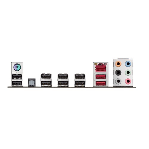 | 背面インターフェース | 1 x PS/2 keyboard/mouse combo port(s) 1 x LAN (RJ45) port(s) 2 x USB 3.1 (red)Type-A 8 x USB 2.0 1 x Optical S/PDIF out 6 x Audio jack(s) |
